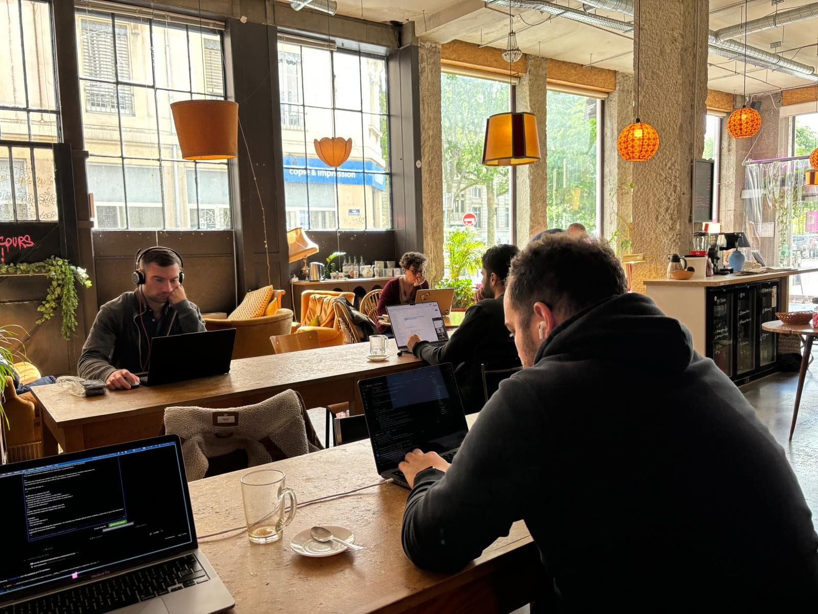 Nous faisons régulièrement du télétravail, parfois dans des espaces de coworking sur Lyon, alors nous est venu l'idée: "Et si on proposait à la communauté des dates et des lieux pour se retrouver et télétravailler dans le même lieu sur lyon en pré-réservant des places ?"